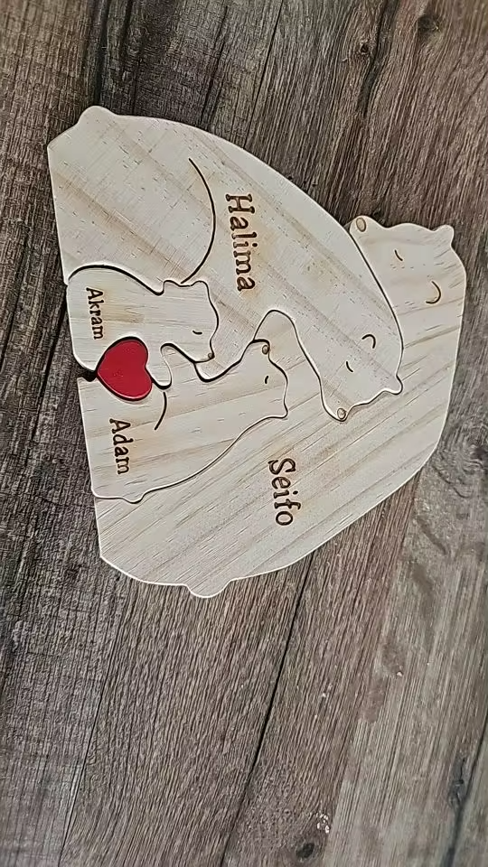 Dřevěná skládačka je mnohem víc než jen hra, je to personalizovaná cesta rodinnými vazbami. Každý dílek skládačky, pečlivě vyrobený z vysoce kvalitního dřeva, představuje milovaného člena rodiny. Díky jemně vyrytým jménům nebo iniciálám se skládačka stává hmatatelným vyjádřením rodinného pouta. Skládání této skládačky se stává intimní činností, která podporuje komunikaci, spolupráci a hluboký pocit jednoty mezi členy rodiny.